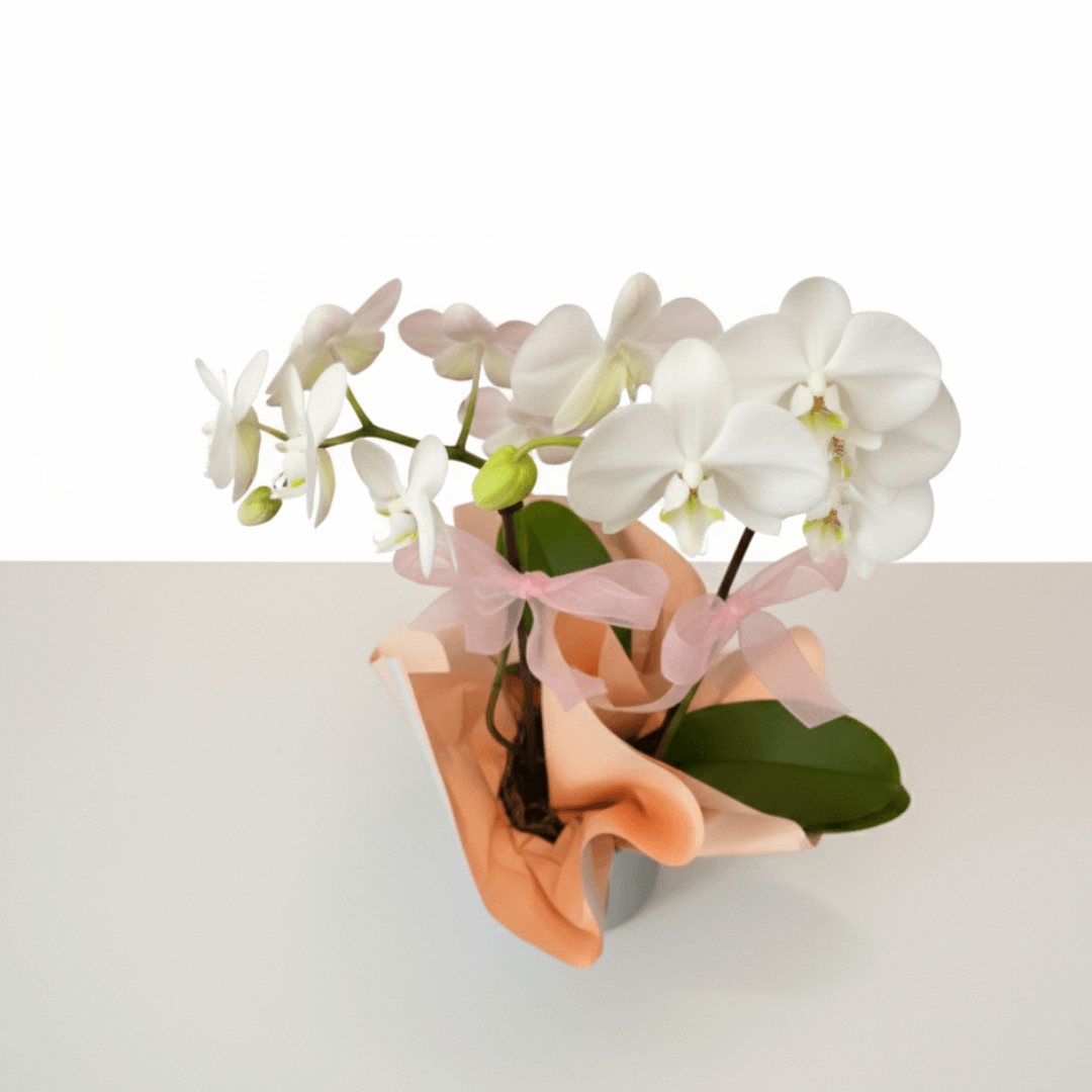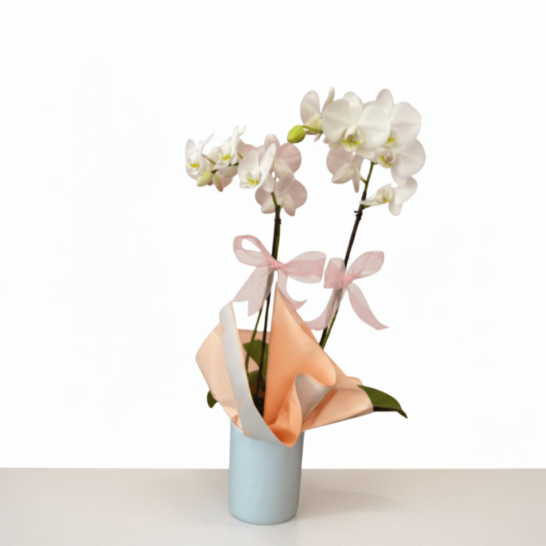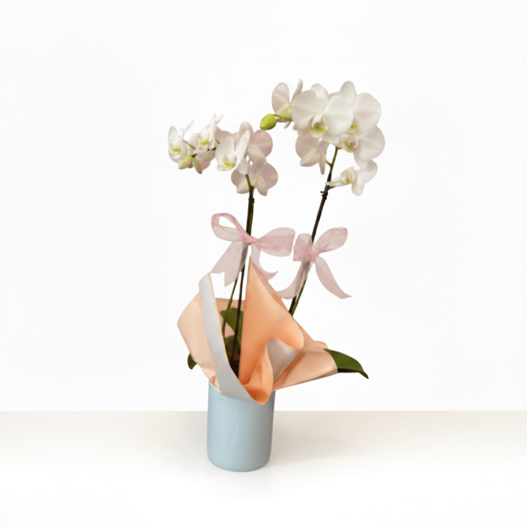 Maceta de dos varas de orquídeas, símbolo de equilibrio y pureza. Ideal para regalar elegancia en su forma más simple y refinada.
