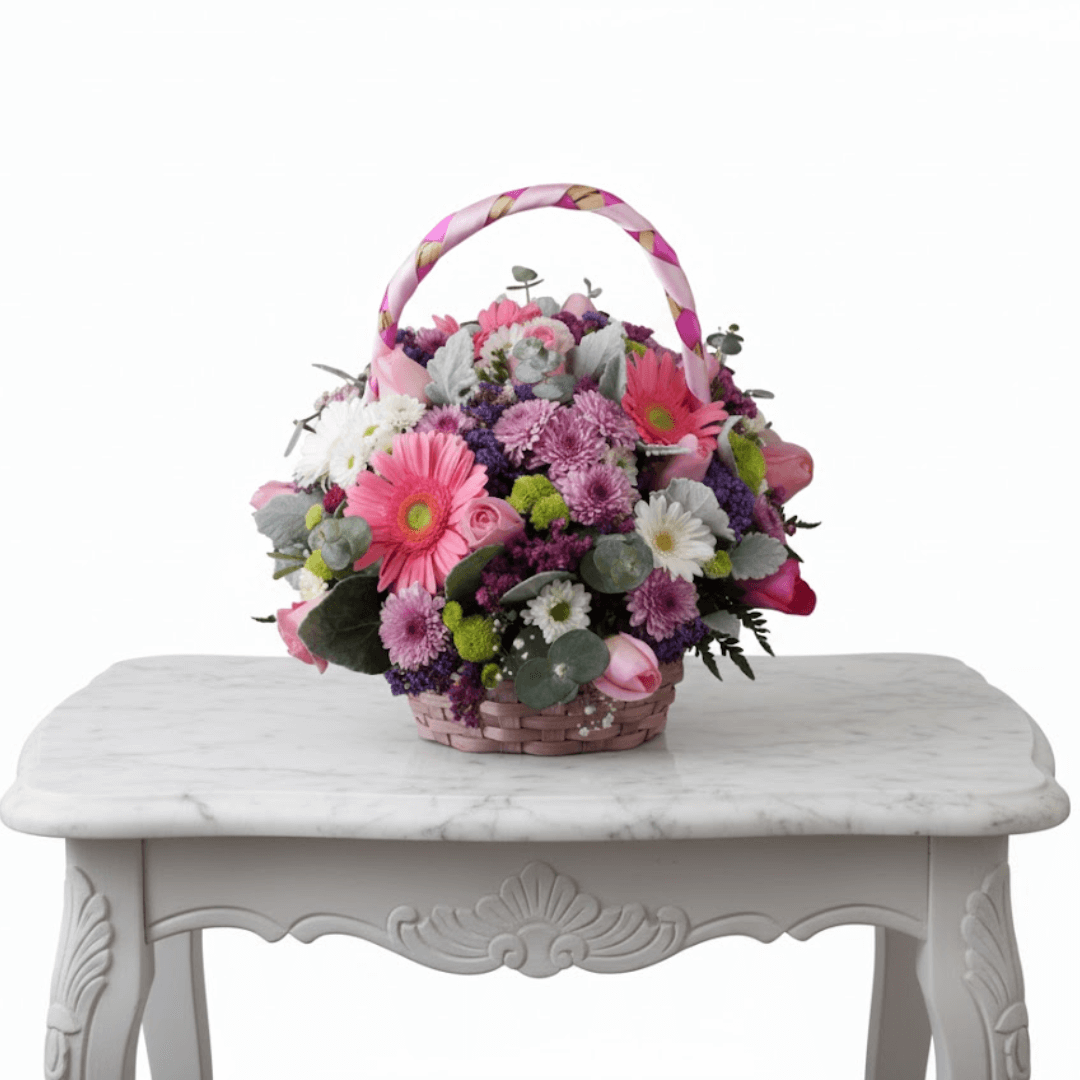 Impresionante Canasta Grande Primaveral con la mejor selección de flores. Regalo ideal para cualquier ocasión. Agrega extras y recibe con envío a domicilio en Toluca y Metepec.