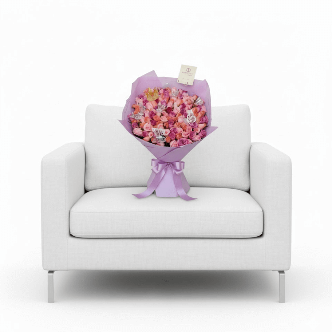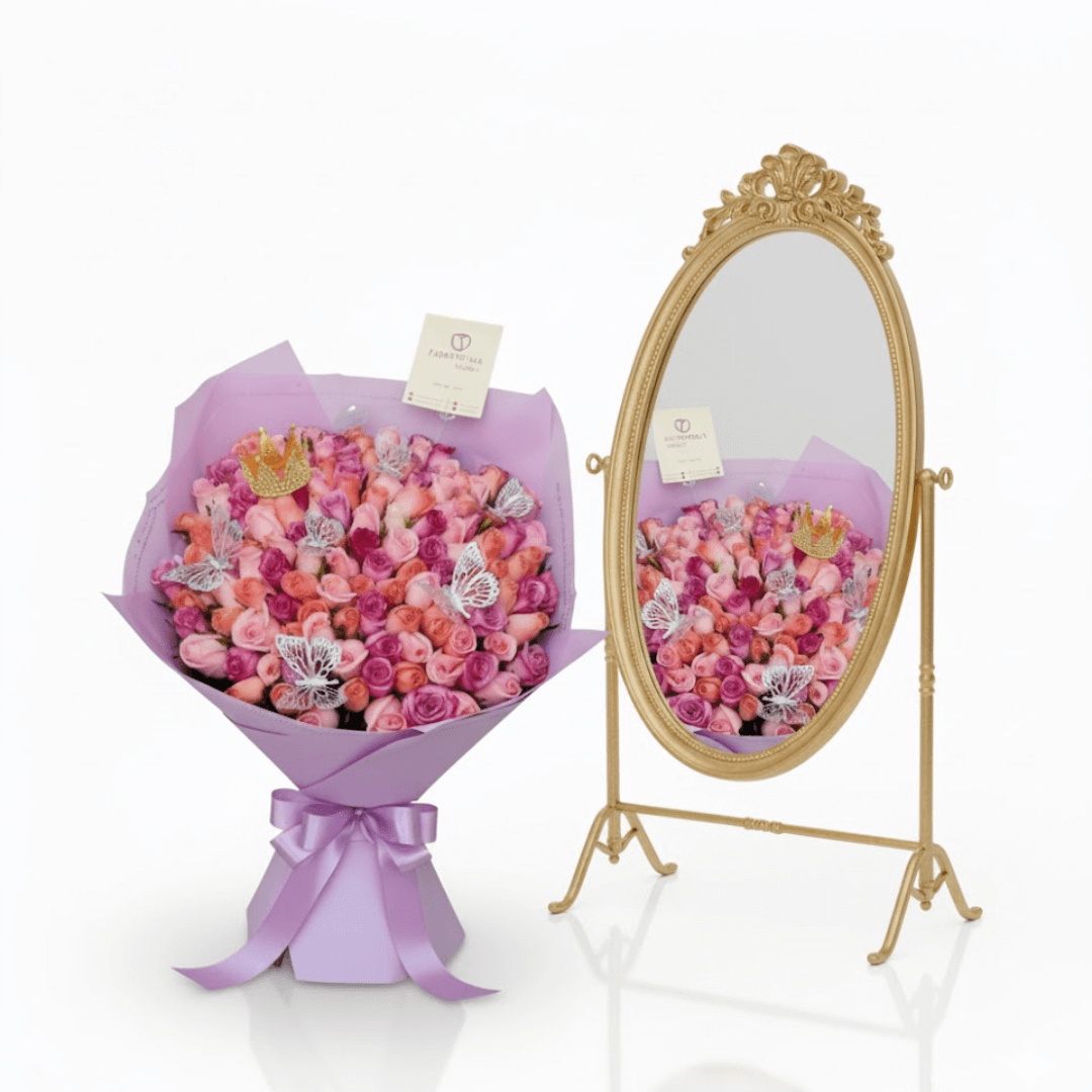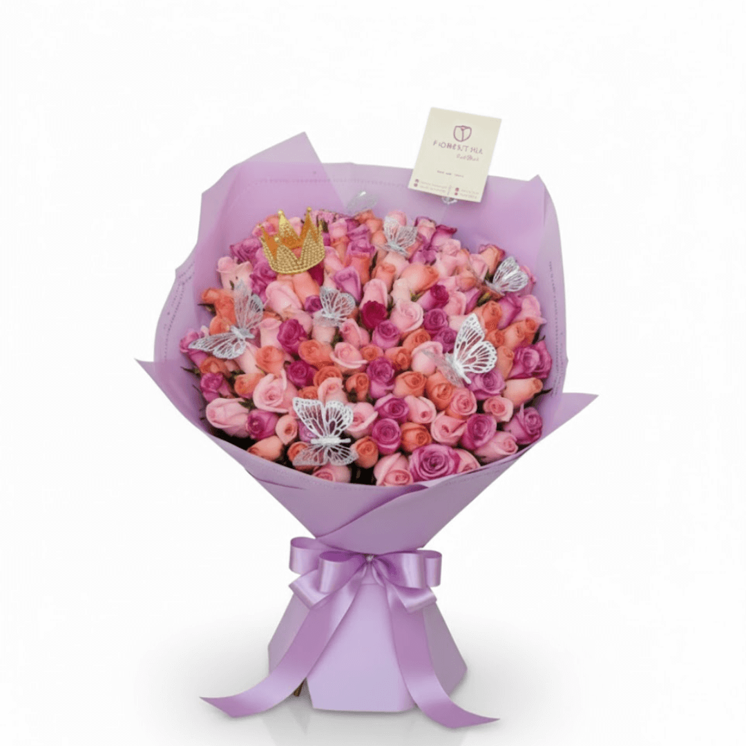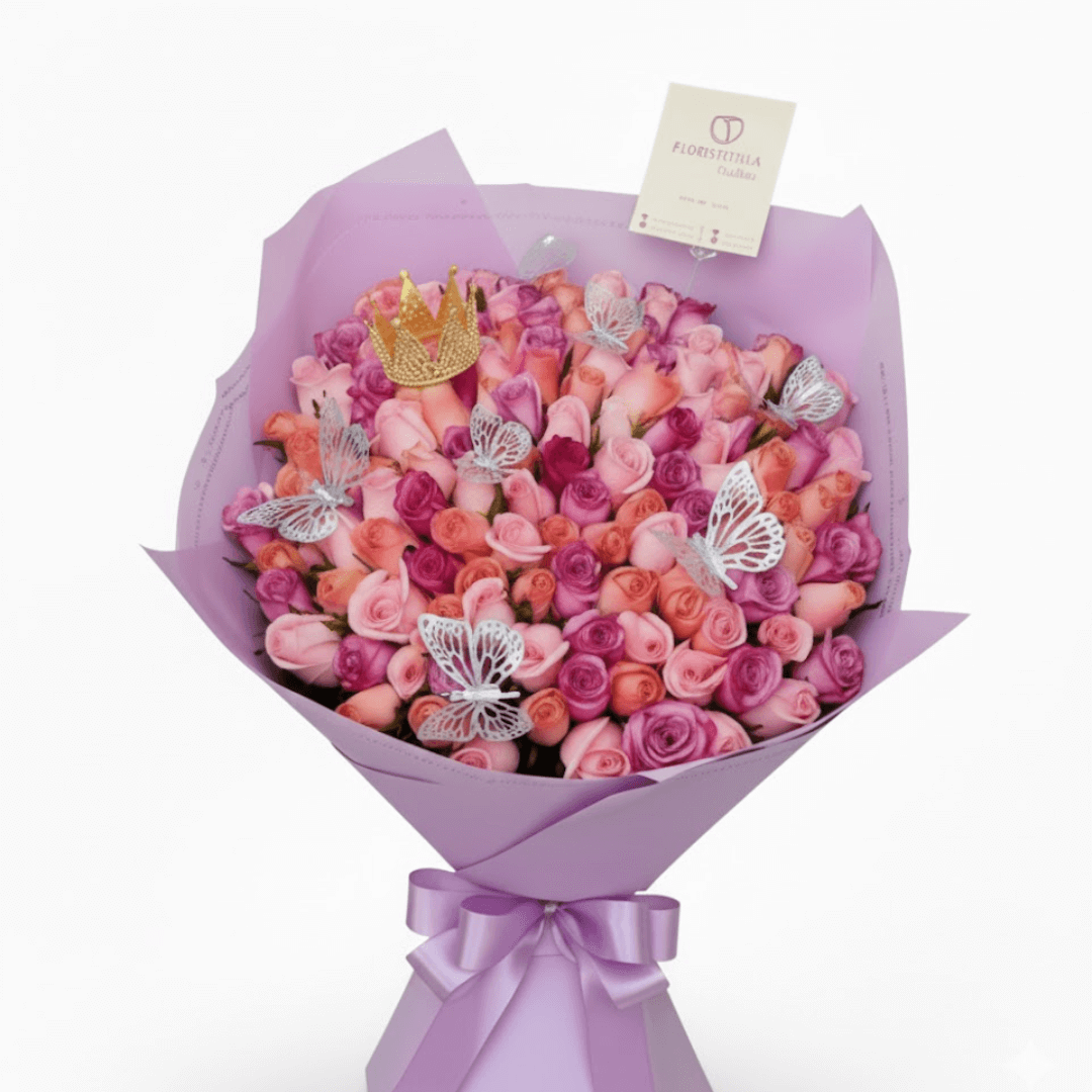 Sorprende con nuestro espectacular ramo de 150 rosas rojas premium, realzado con una elegante corona chica y adornos de 8 mariposas. El regalo perfecto para ocasiones especiales. ”Personaliza tu pedido y aprovecha nuestra entrega a domicilio en Toluca y Metepec!