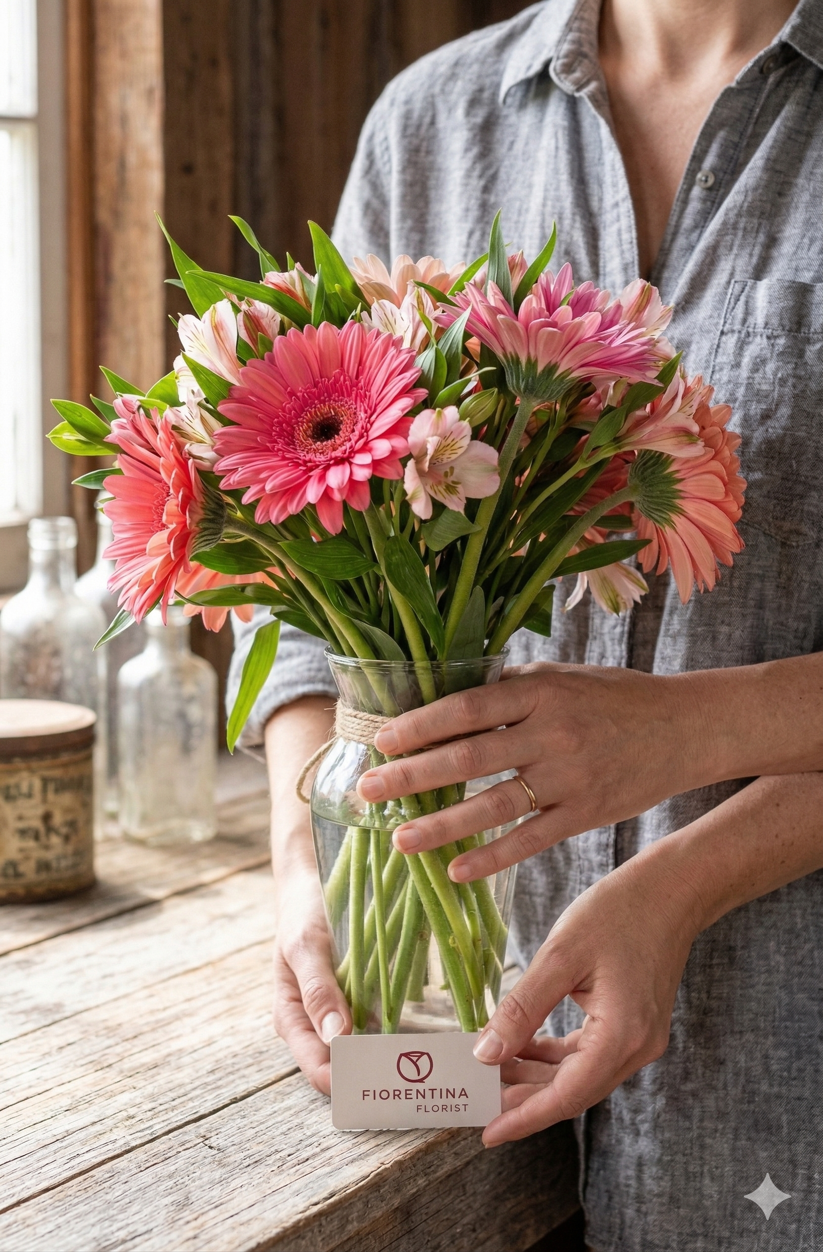 Con una altura total de 40 cm, este arreglo destaca por su presencia ligera pero sofisticada, reflejando la esencia de Fiorentina: belleza natural que transforma cualquier momento.