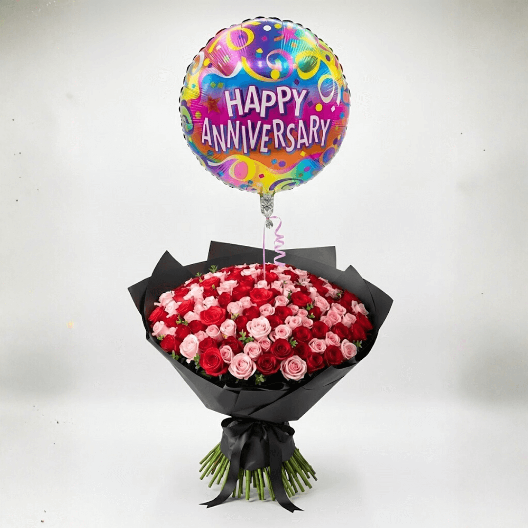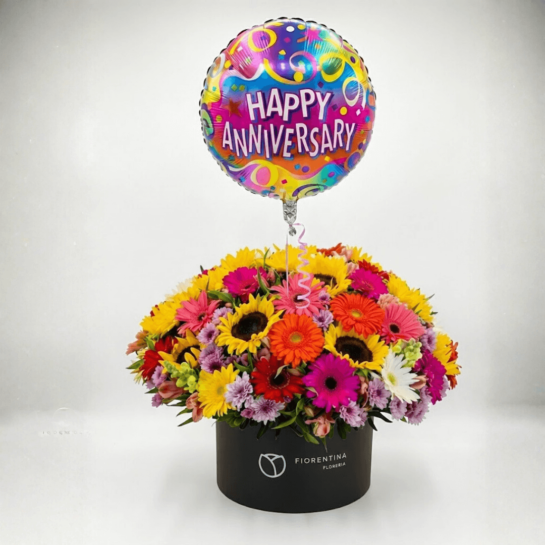 Complementa tu sorpresa con un Globo Metálico de Feliz Aniversario. El detalle ideal para dar un toque festivo y romántico a tus flores y regalos. Diseños coloridos aptos para helio. ¡Celebra el amor por todo lo alto hoy!