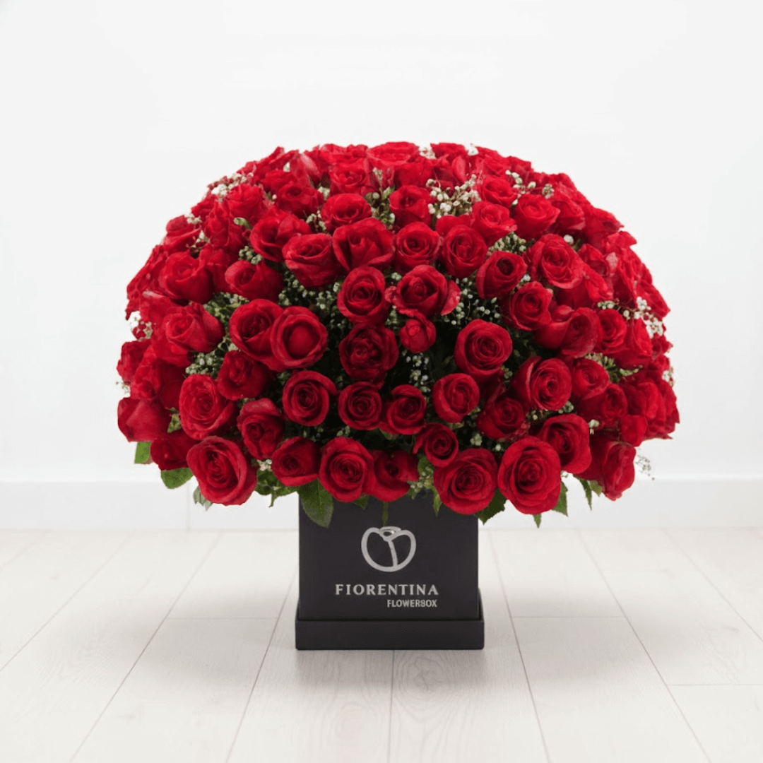 Caja redonda de 200 rosas, un arreglo de ensueño para celebrar el amor o alegrar el día. Su diseño imponente y romántico lo convierte en el regalo ideal.