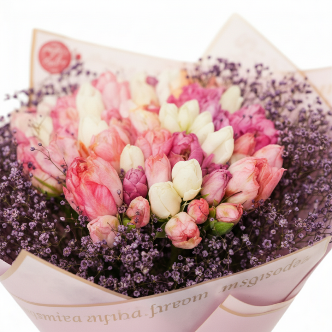Ramo de 100 rosas y gypsophilia pintada, símbolo de amor duradero y elegancia. Ideal para aniversarios, pedidas o declaraciones inolvidables.