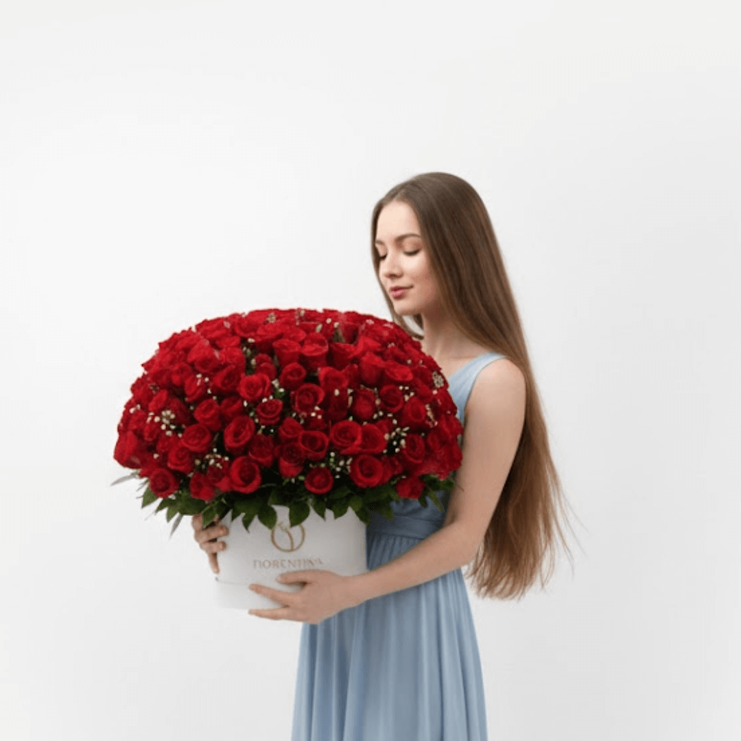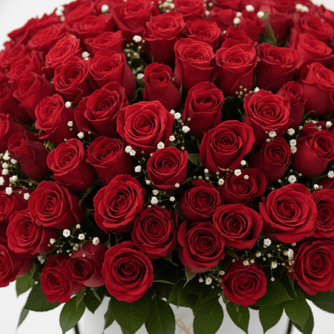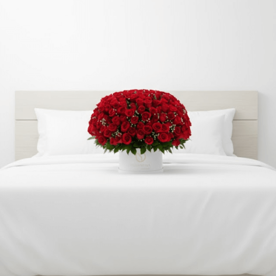 Arreglo redondo de 300 rosas, ideal para enamorar o pedir perdón. Un gesto majestuoso que expresa amor infinito con elegancia.