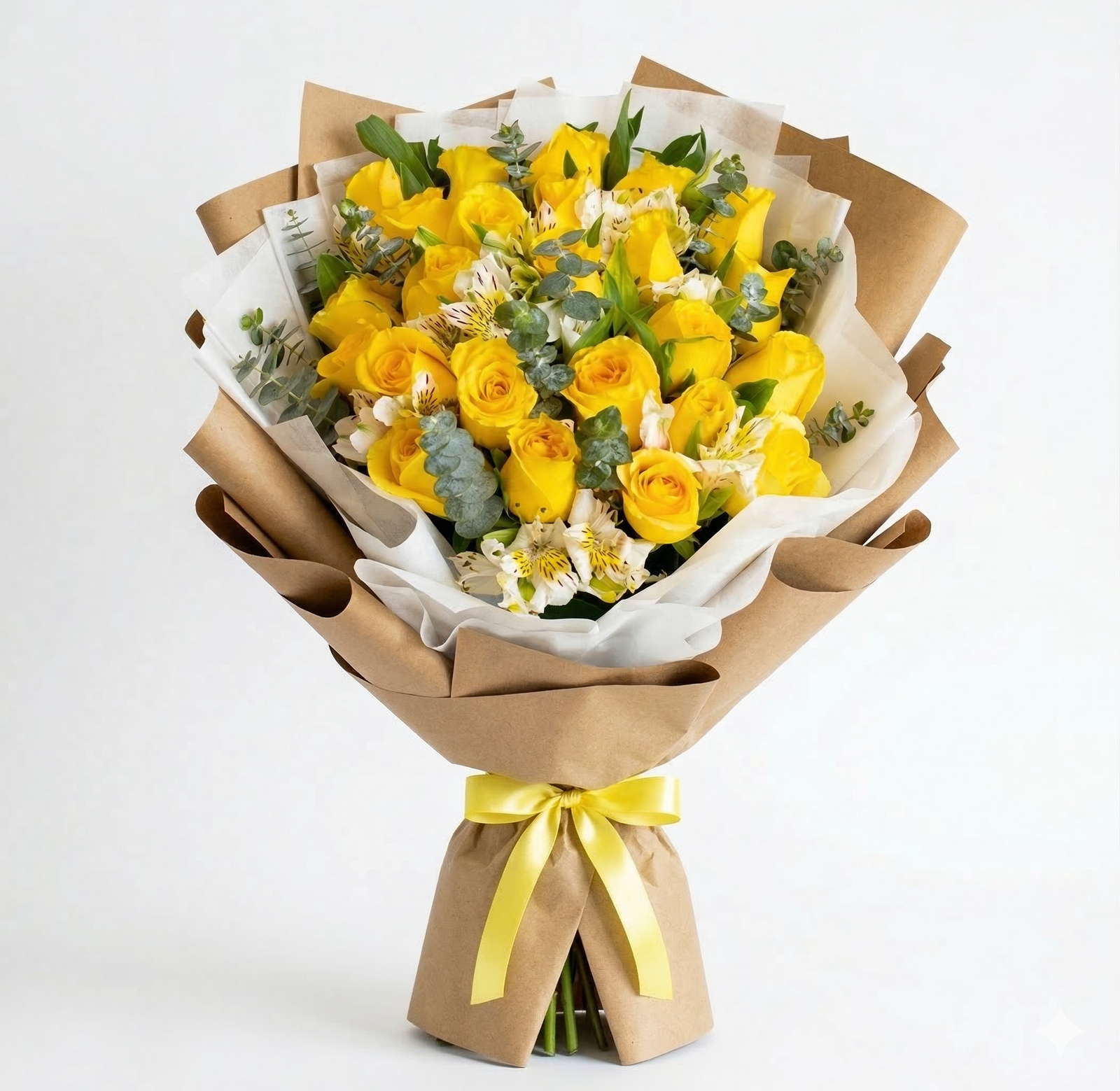 • Ramo de 24 rosas amarillas combinadas con astromelia y dolar