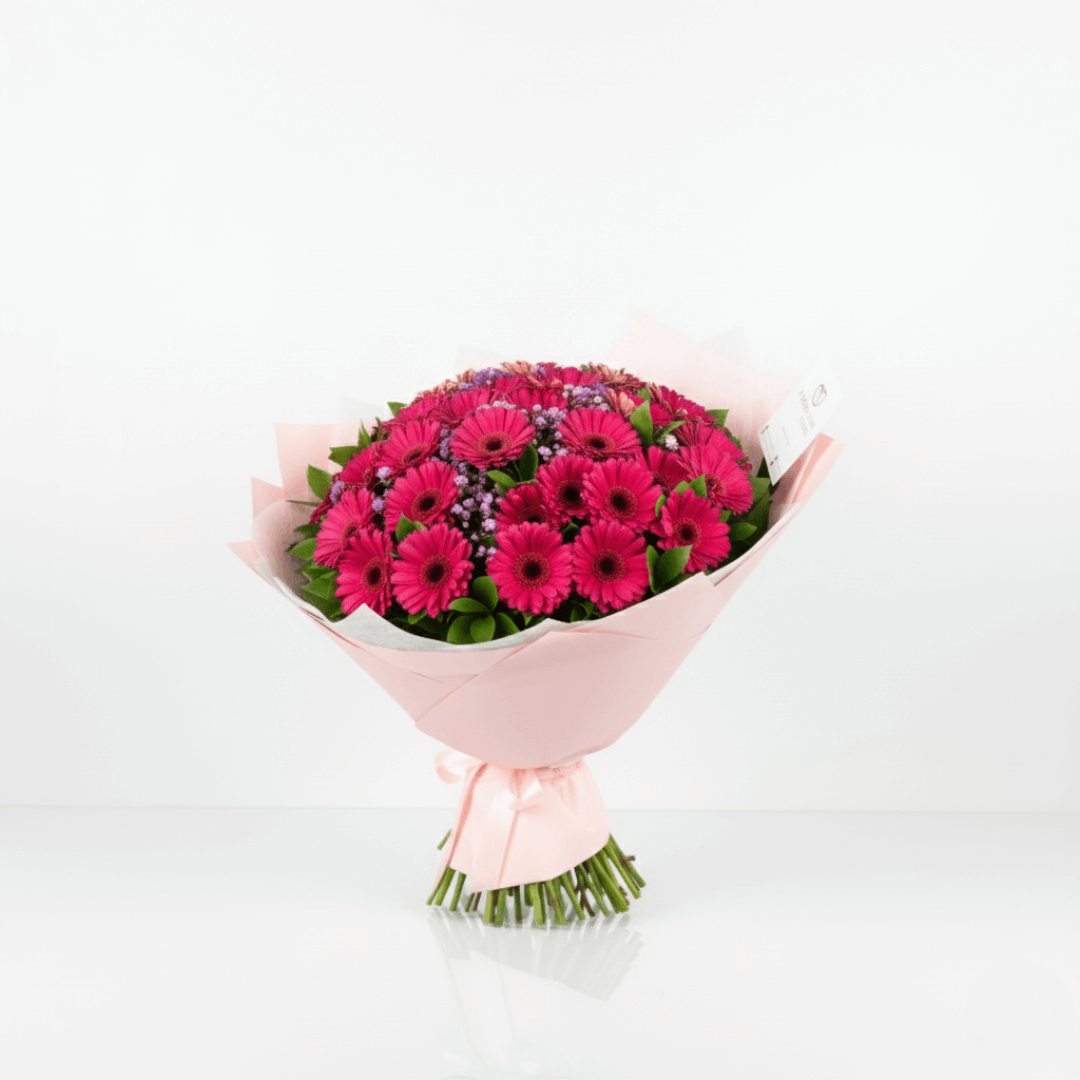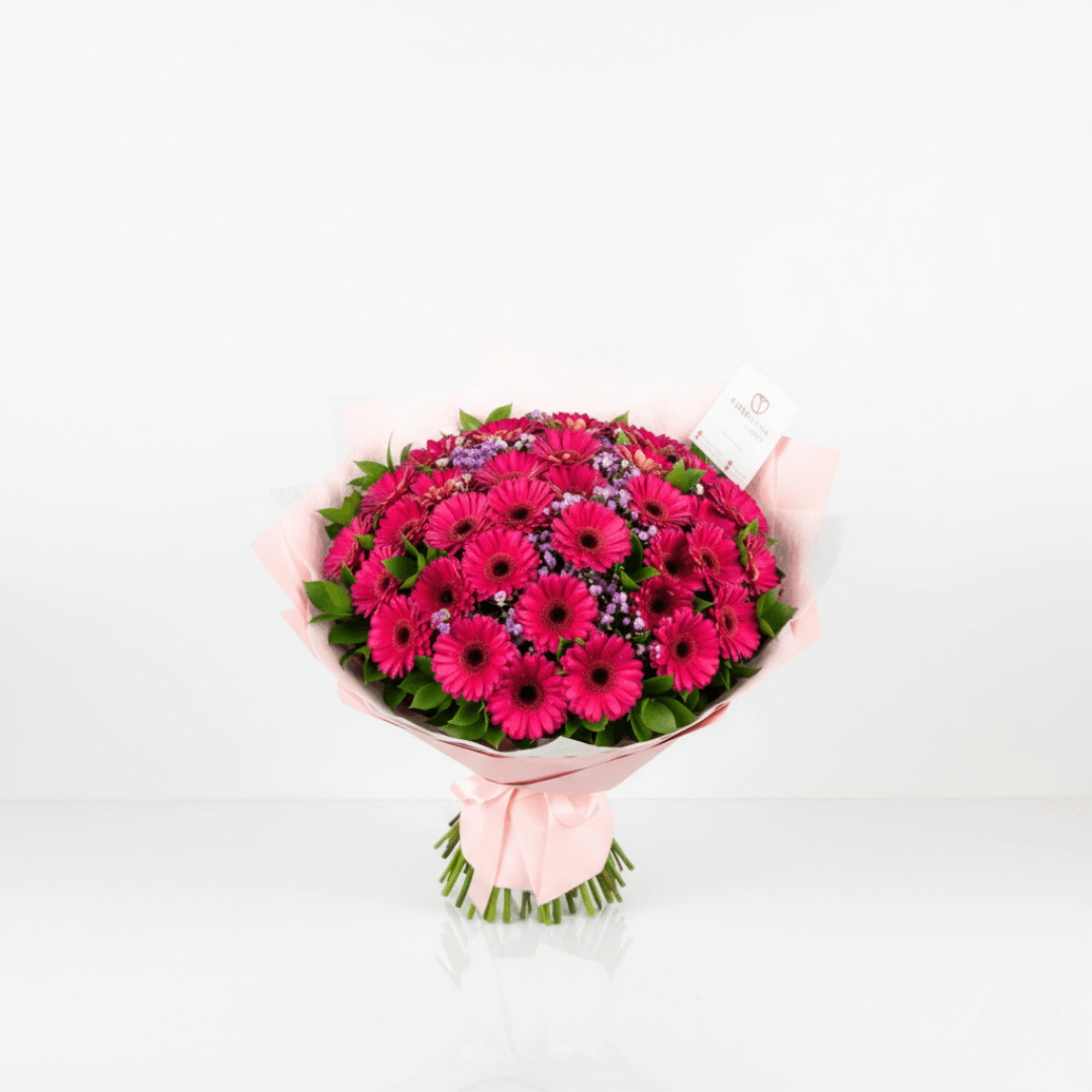 Impresionante ramo de 60 gerberas frescas y vibrantes. El regalo perfecto para impactar. Personaliza con extras y aprovecha el envío a domicilio rápido en Toluca y Metepec.